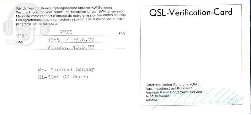 Land: AUT, Austria Gruppe: international Bezeichnung: ROI Station: ORF Auslandienst auf Kurzwelle QSL Datum: 1977-06-23 Beschreibung: Ansichtskarte; Serie Zeitgenössische Österreichische Kunst 1/6; *q*Manfred Ebster - Schneckenburg Kommentar: *p*Michiel Schaay; *f*9765